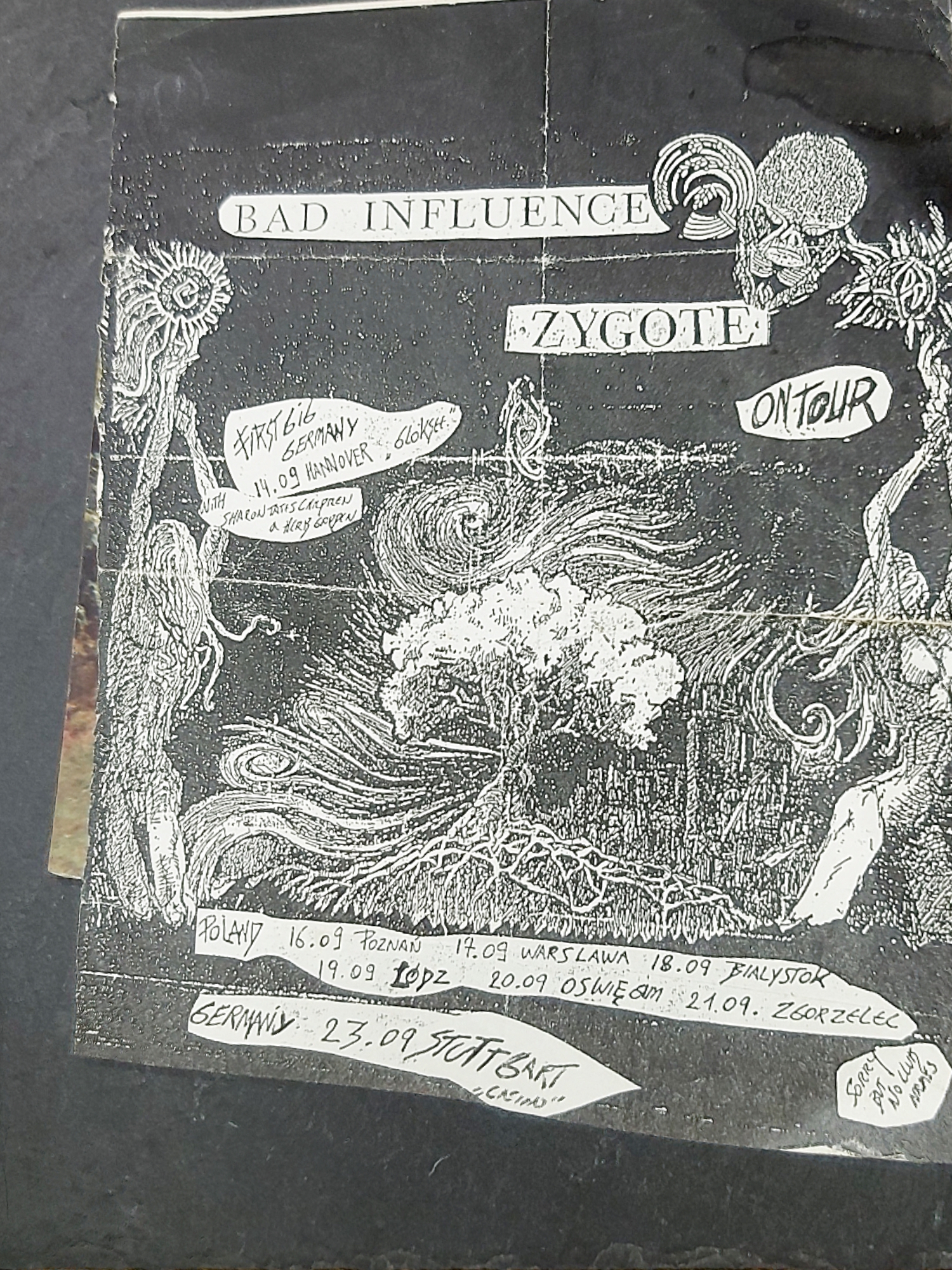 Foetus, Big Black ,Test Dept, Laibach…it’s weird as music was absolutely EVERTYTHING back then & I can’t remember some of the ace bands we come across…brilliant sounds on the Russian/Polish border, a squat in Arnhem, a fantastic punk rock bar in Ypres [De Vort’n Vis], a free festival in Treworgey, a youth centre in Northern Germany…….Sharon Tate’s Children!